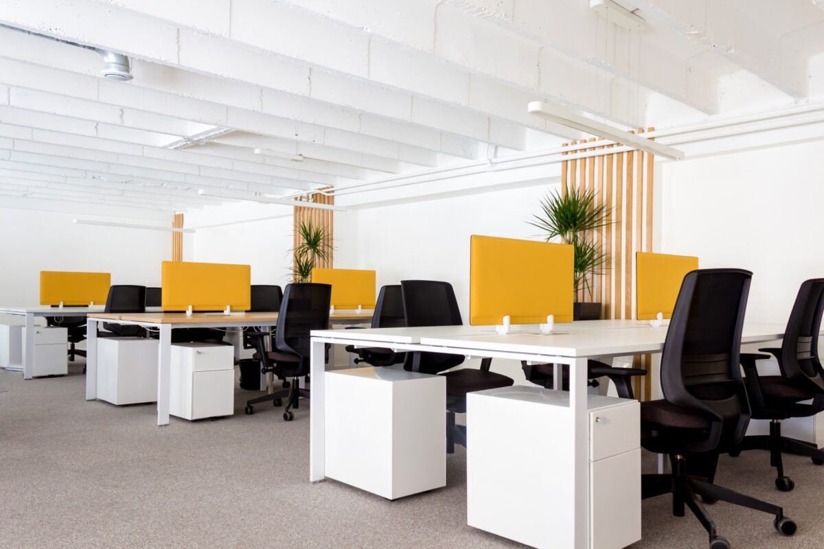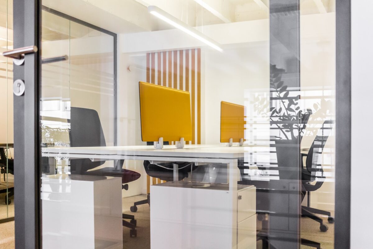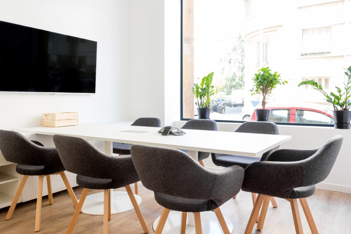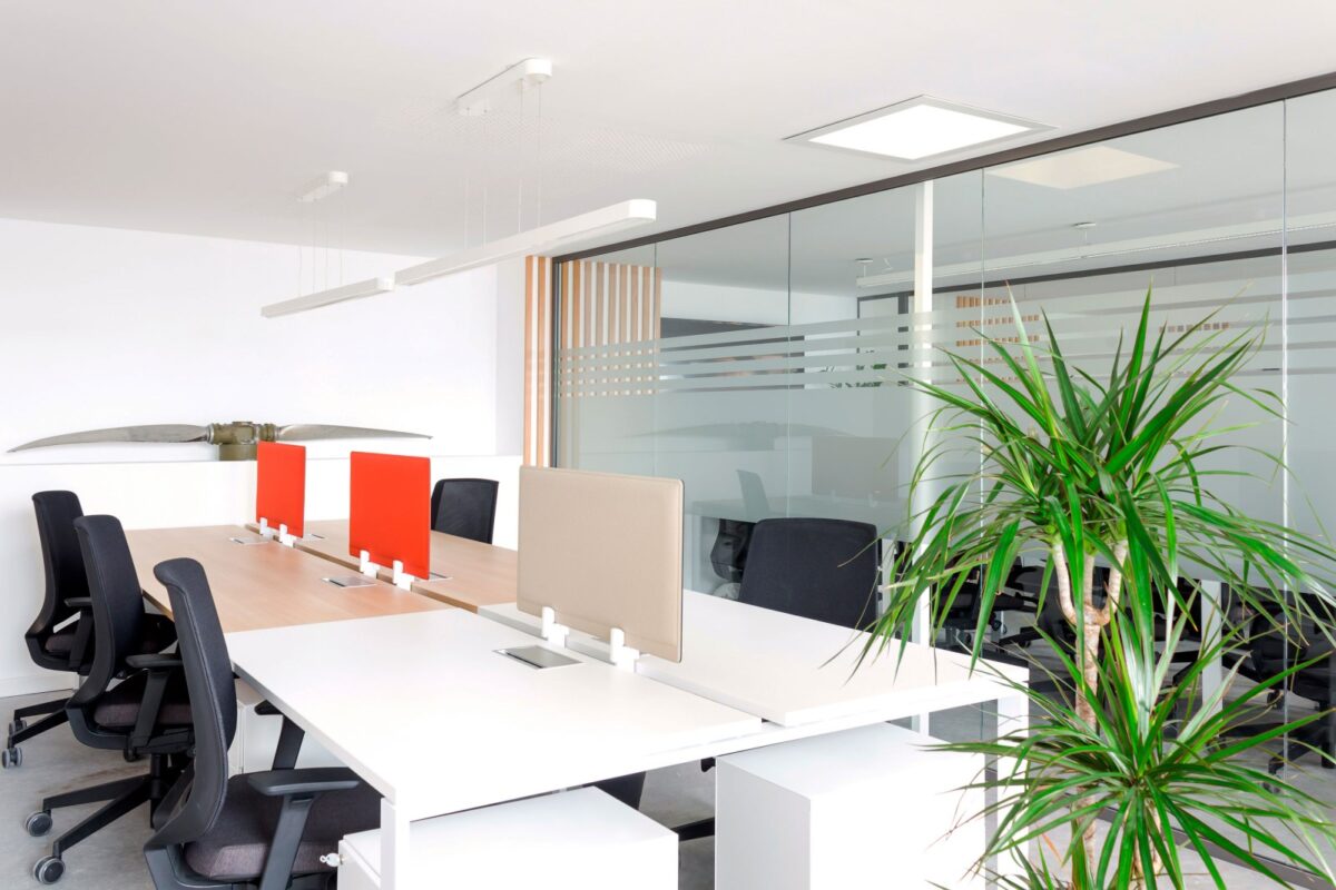 Espace accueil, salle de réunion, open space et bureaux individuels.