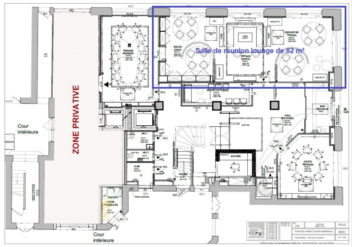 Hôtesse d’accueil, salle d’attente commune Salle de réunion lounge de 82 m² au RDC