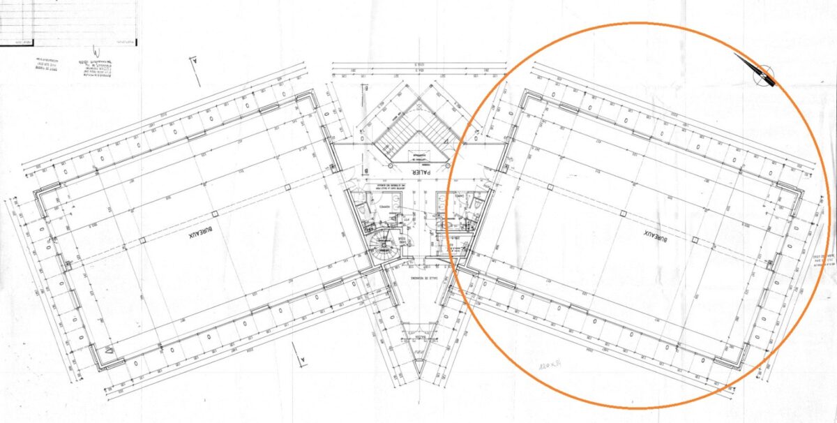 Aile gauche: Bureaux livrés rénovés et décloisonnés