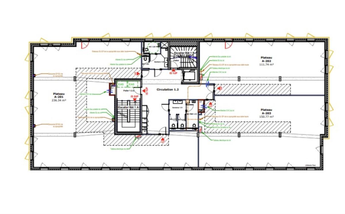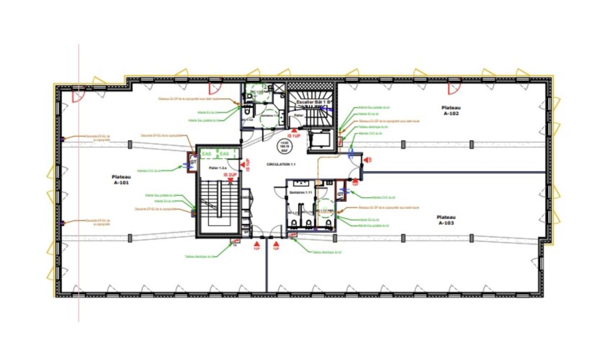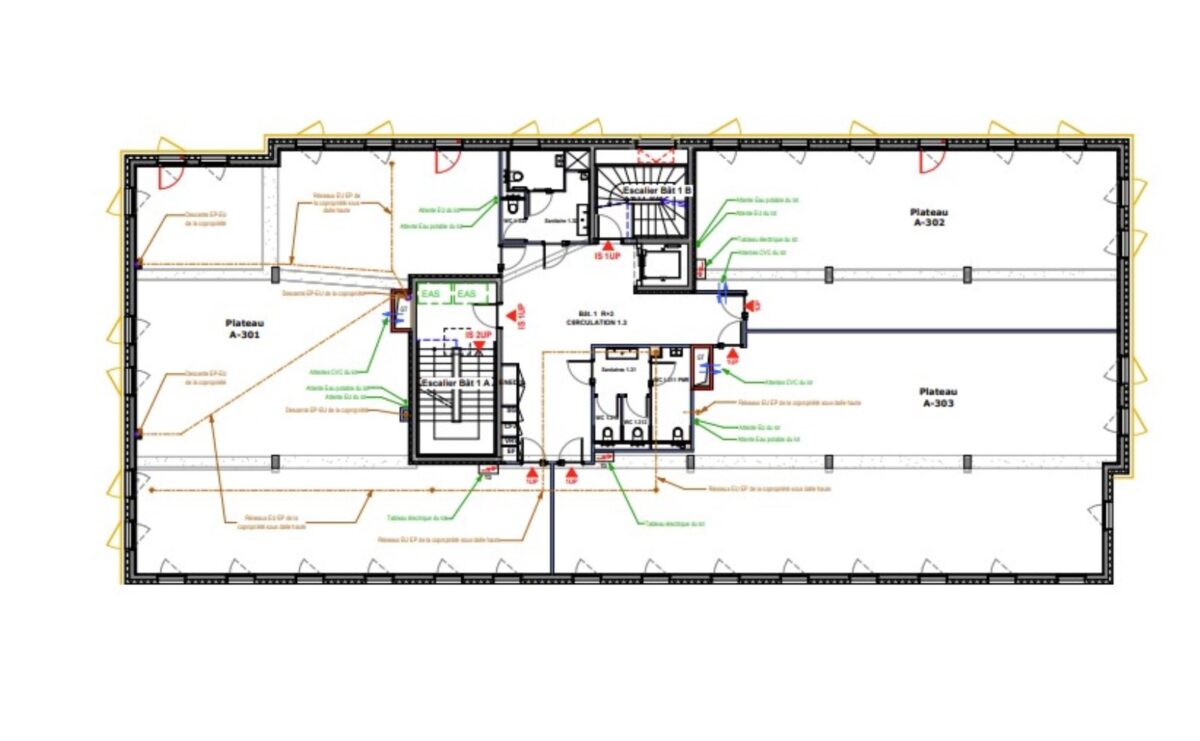 Hauteur Sous-Plafond : bureaux : 2.70m et HSP commerce : 4m
