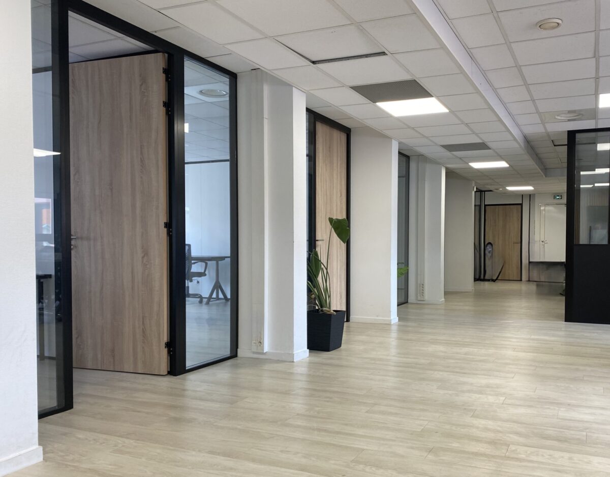 Bureaux cloisonnés, vitrés toute hauteur et porte en bois toute hauteur