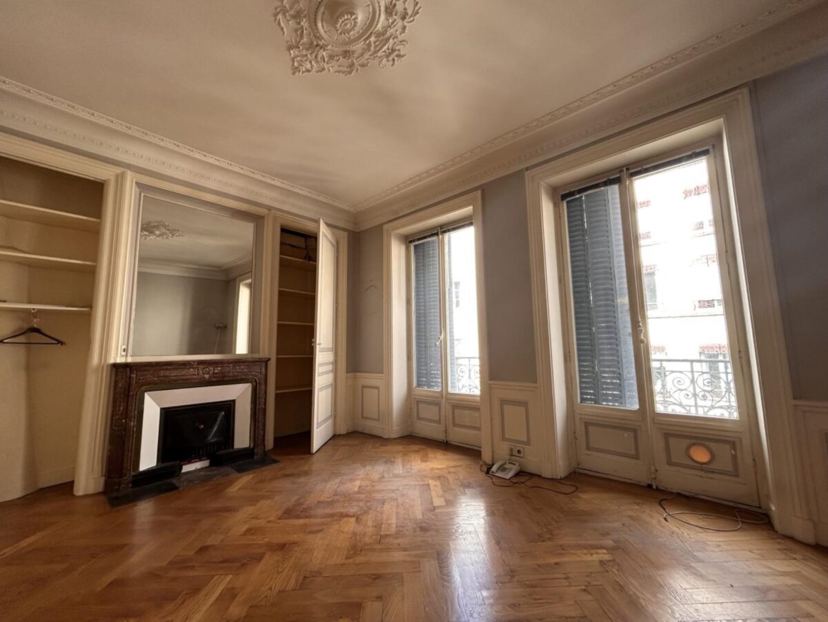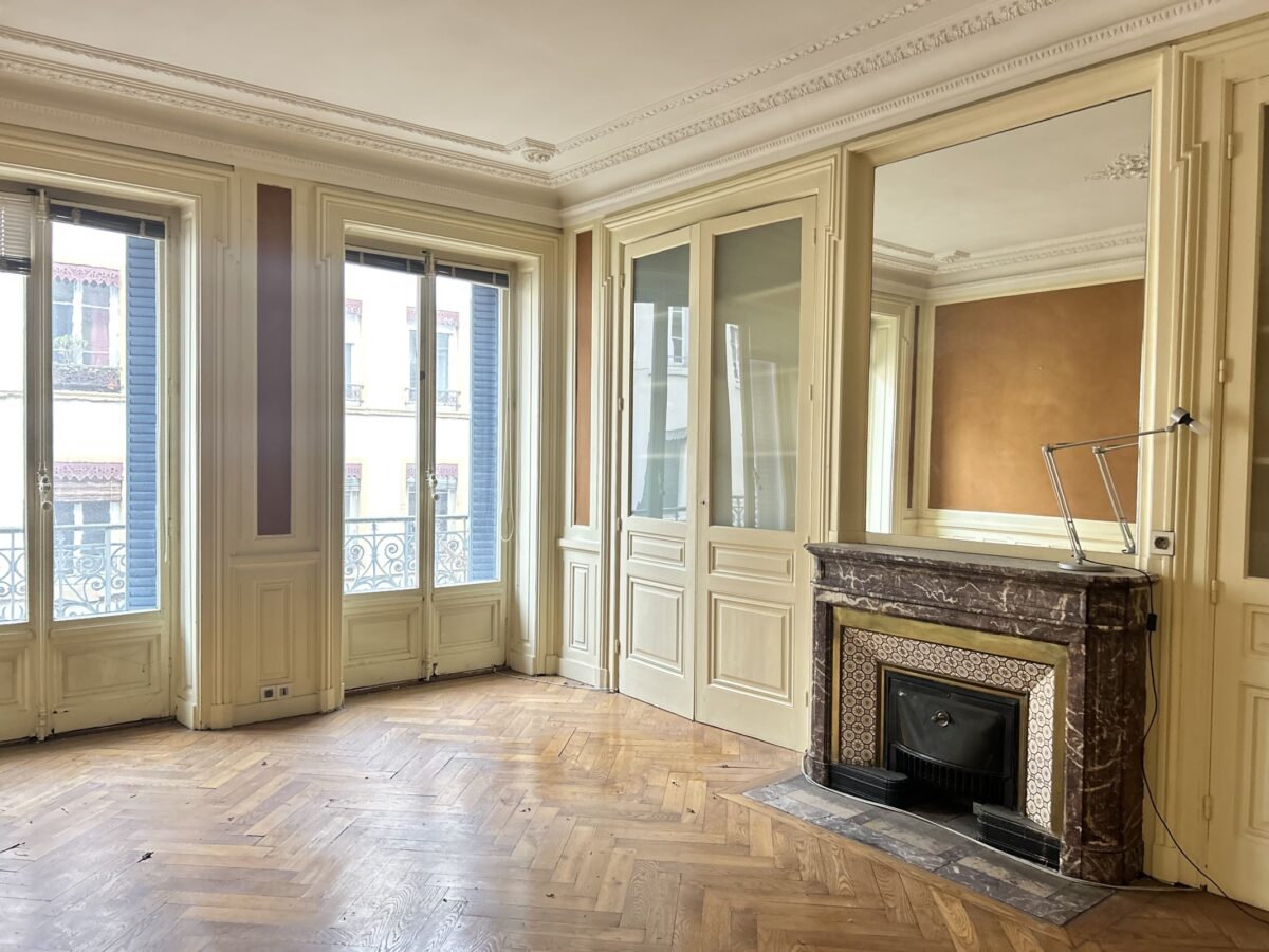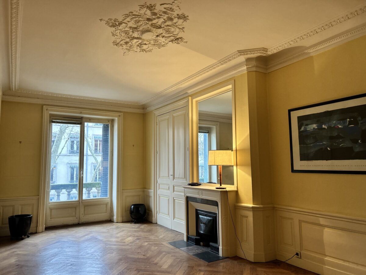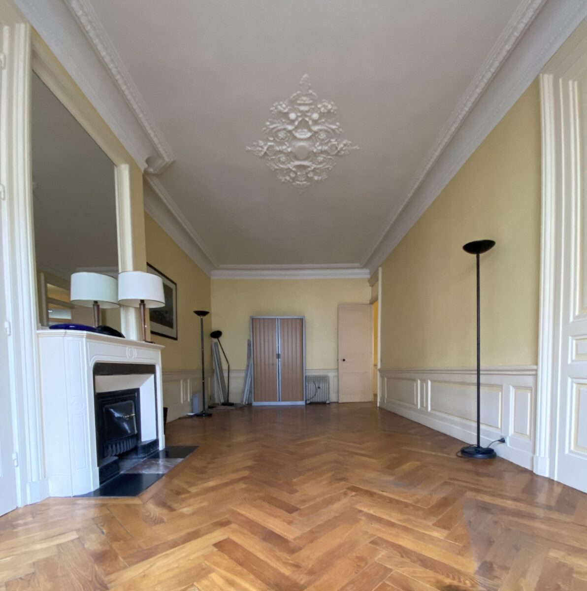 Prestations haussmanniennes : parquet chevron, cheminés, moulures