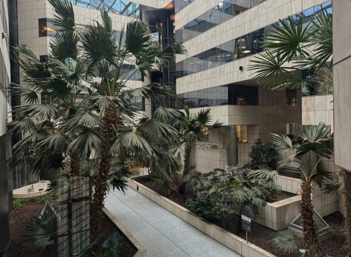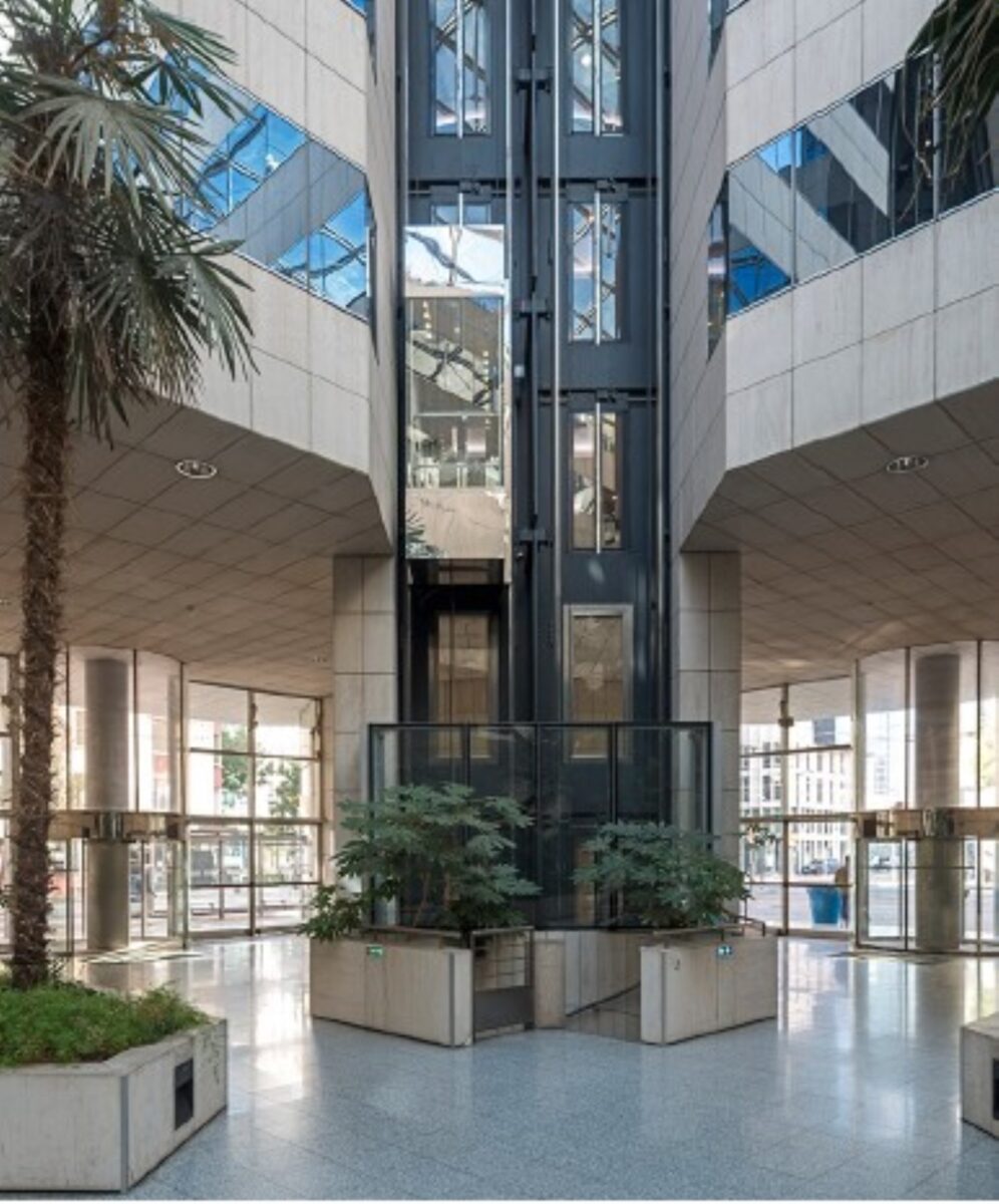 Immeuble de bureaux bénéficiant d’une belle visibilité en R+7 composé de plusieurs ailes formant un carré à l’intérieur duquel se trouve un patio végétalisé couvert par une verrière