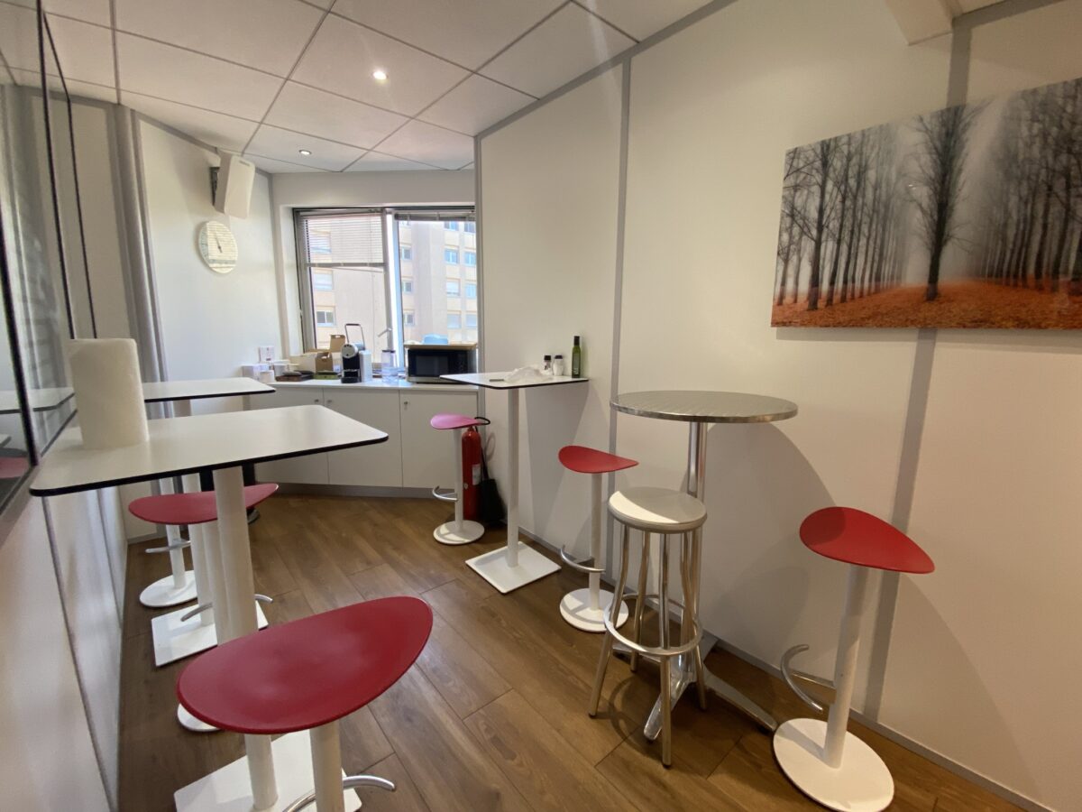 Accueil, salle de réunion, bureaux individuels et de direction, coin accueil et cuisine équipée