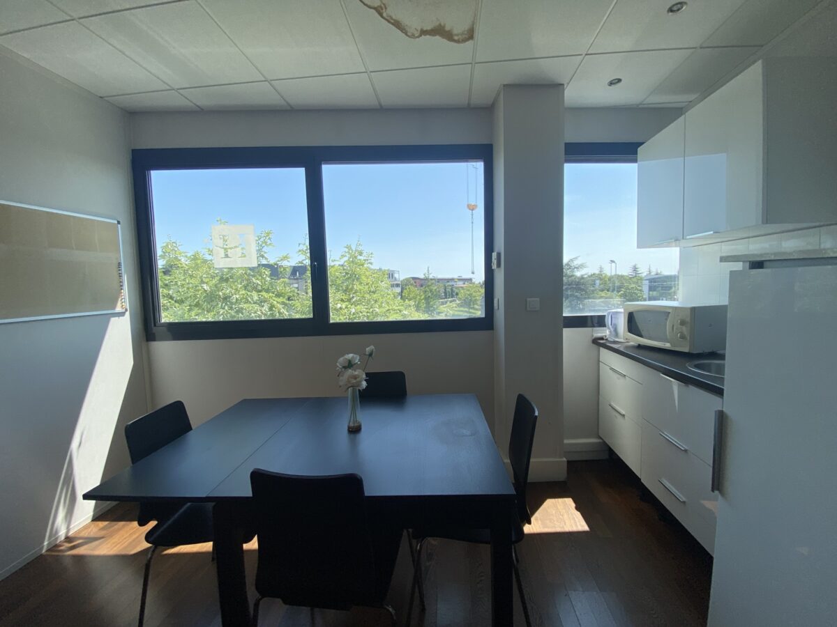 Bureaux cloisonnés et aménagés, bureaux et grande salle de réunion