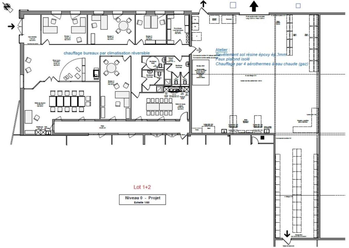 Sanitaires et bureaux à aménager selon besoins du preneur.