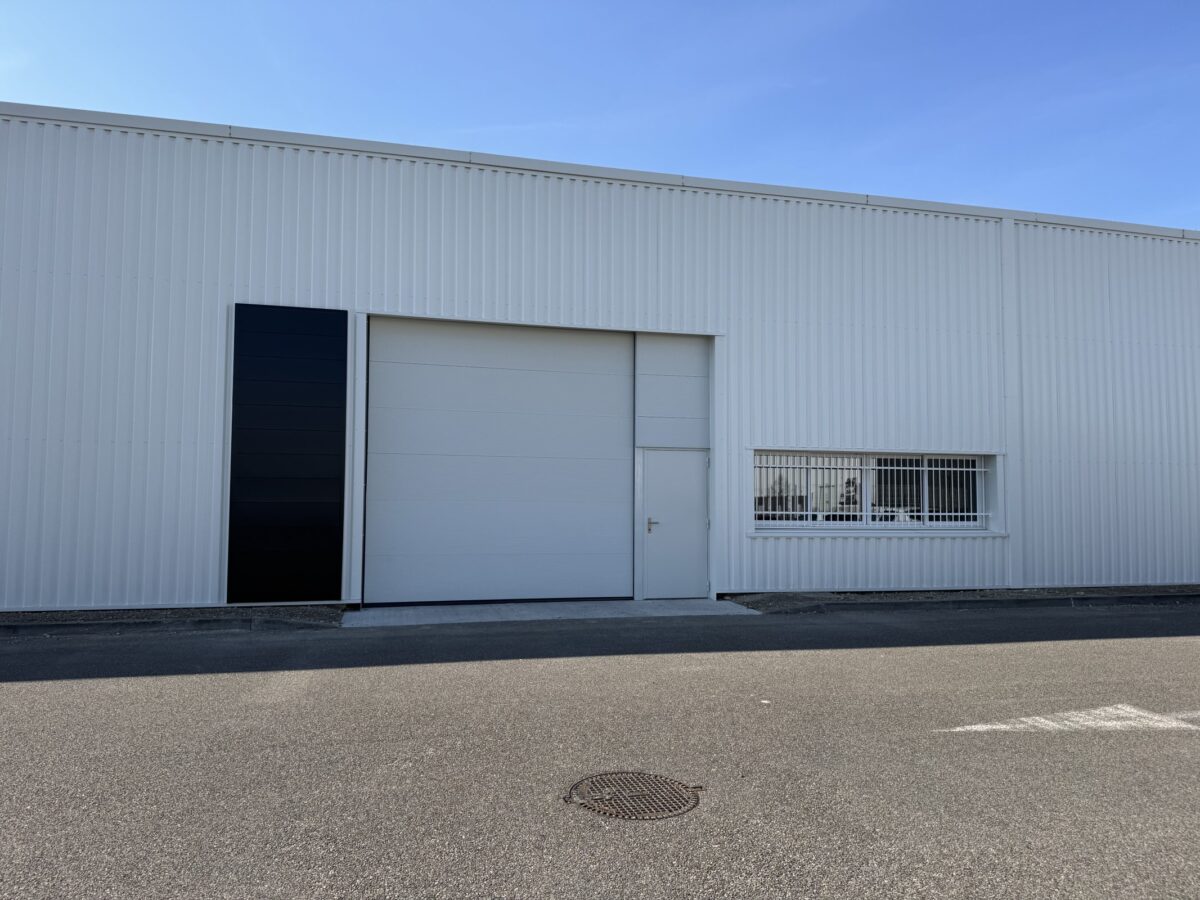 Equipements entrepôts : Porte plain pied coulissante (modifiable en porte sectionnelle si besoin).