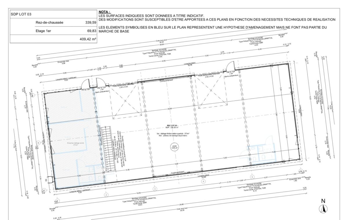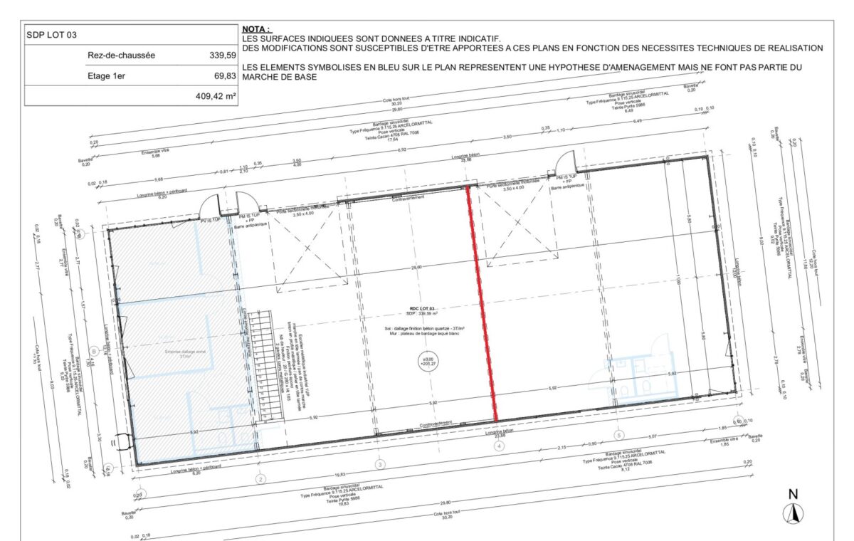Locaux d’activité A LOUER de 408 m² divisibles à partir de 137 m²