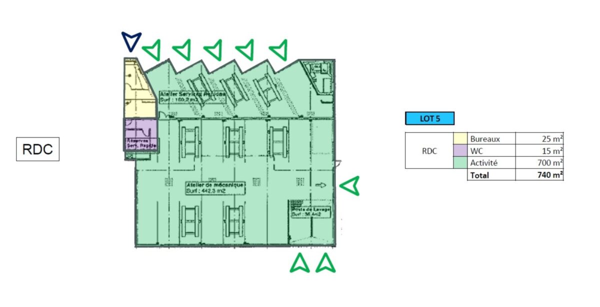 Locaux d’activité A LOUER de 740 m² non divisibles