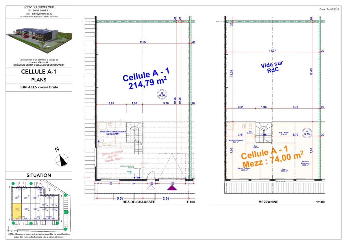 Total Cellule A1 Activités 277 4ème trimestre 2025 1 598,22 HT HD/m² 9 HT/m²/an 4% HT du prix de vente HT, à la charge de l’acquéreur TVA et frais de notaire réduits A1