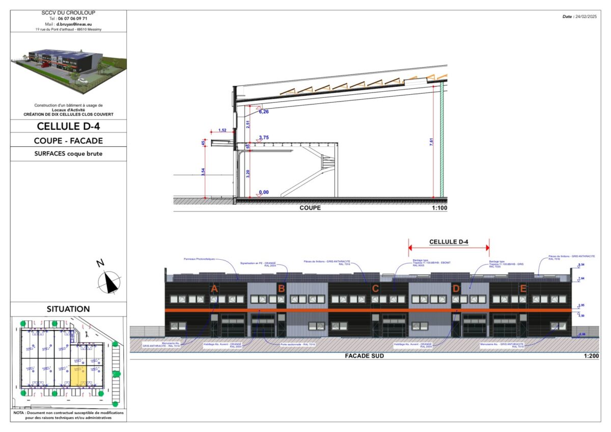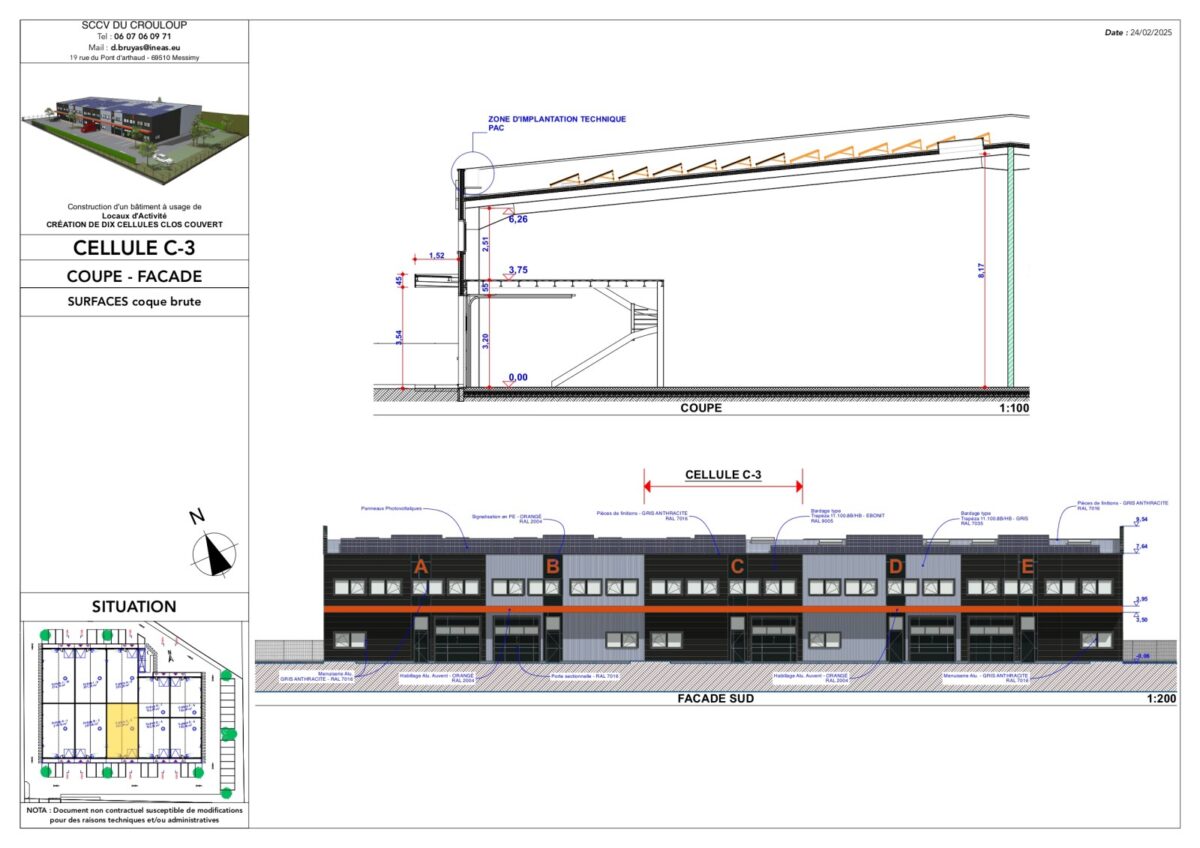 Nous vous proposons un parc d’activités neuf, situé sur la commune de Chasselay dans le Nord-Ouest de Lyon. Ce site est en construction, composé de dix cellules à partir de 206 m². Les locaux sont livrés bruts, fluides en attente, ils bénéficieront de panneaux photovoltaïques et les extérieurs seront totalement terminés avec portail coulissant sur horloge.