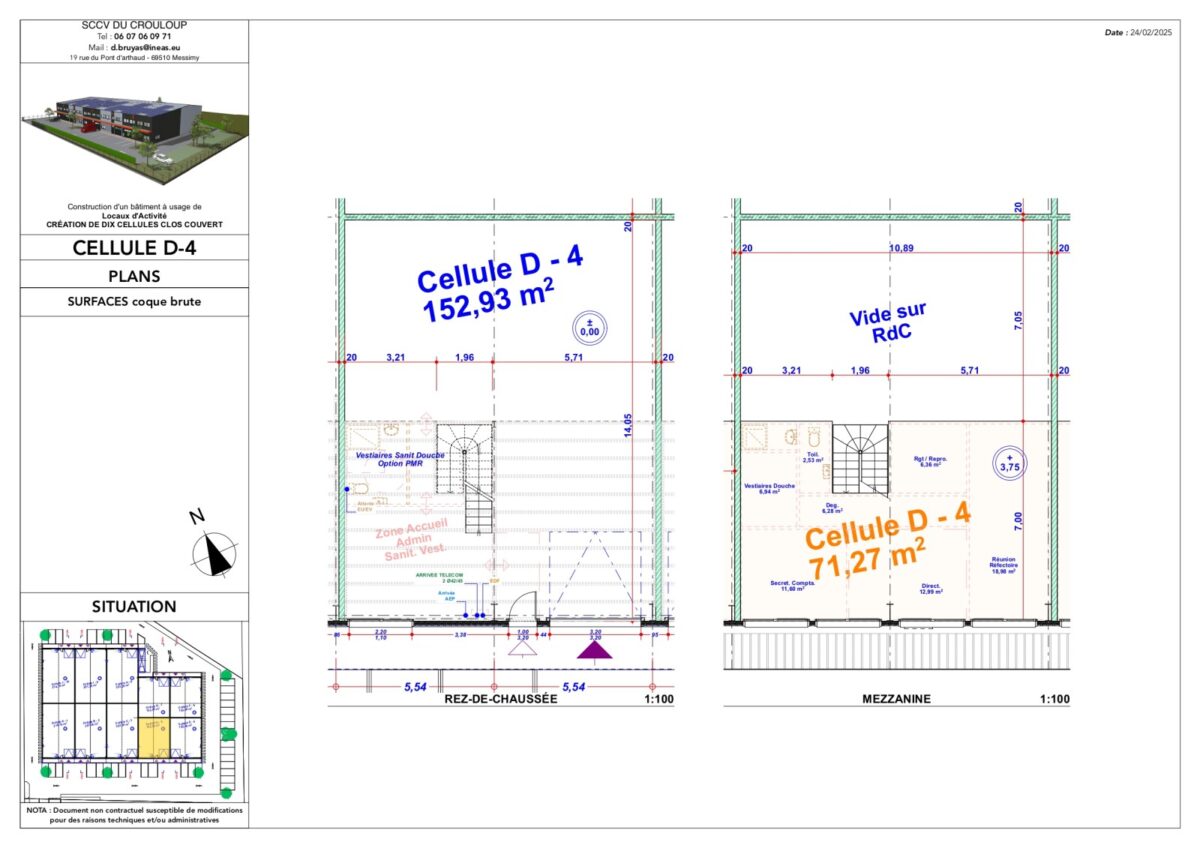 Total Cellule D4 Activités 207 4ème trimestre 2025 1 605,16 HT HD/m² 9 HT/m²/an 4% HT du prix de vente HT, à la charge de l’acquéreur TVA et frais de notaire réduits D4