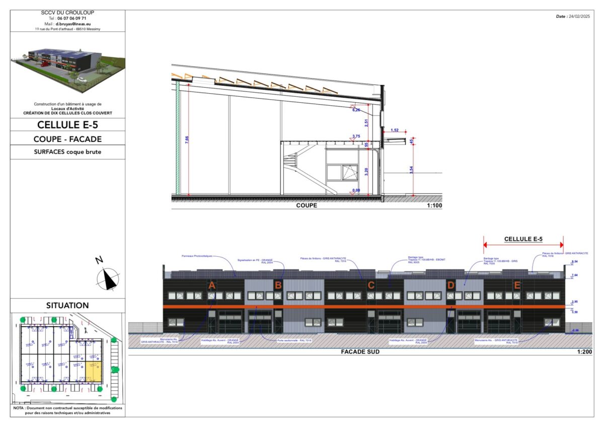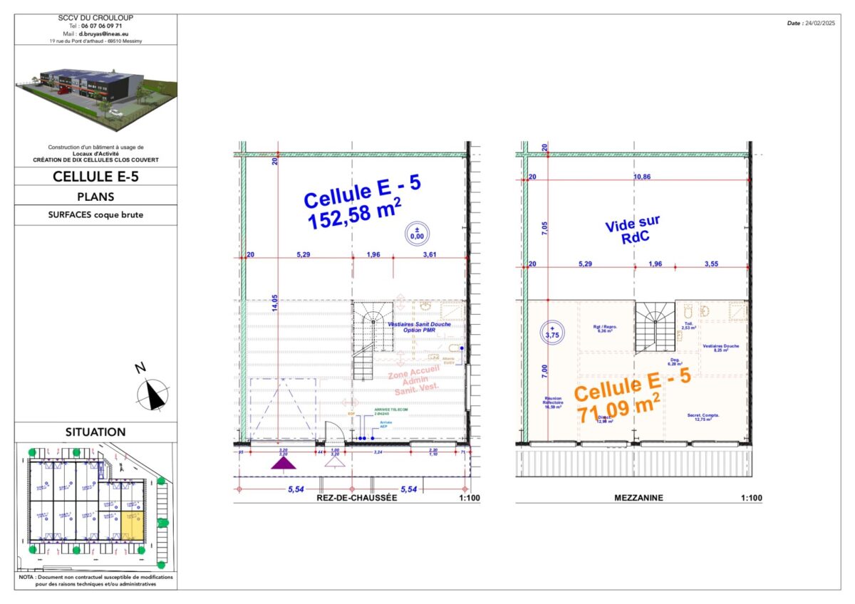 Total Cellule E5 Activités 221 4ème trimestre 2025 1 607,81 HT HD/m² 9 HT/m²/an 4% HT du prix de vente HT, à la charge de l’acquéreur TVA et frais de notaire réduits E5