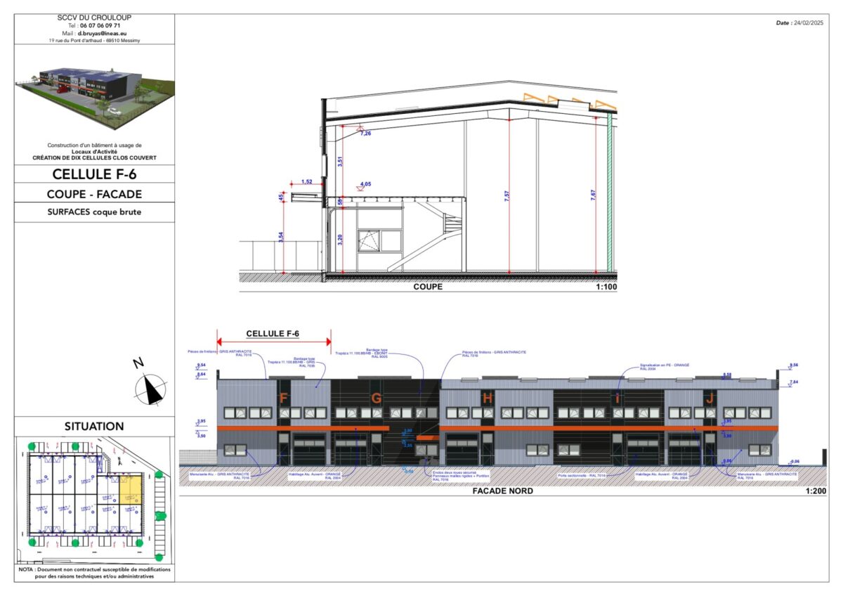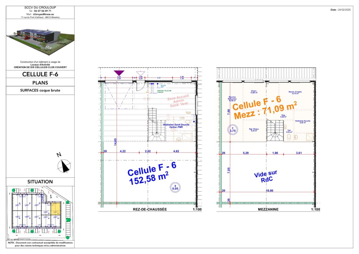 Total Cellule F6 Activités 221 4ème trimestre 2025 1 607,81 HT HD/m² 9 HT/m²/an 4% HT du prix de vente HT, à la charge de l’acquéreur TVA et frais de notaire réduits F6