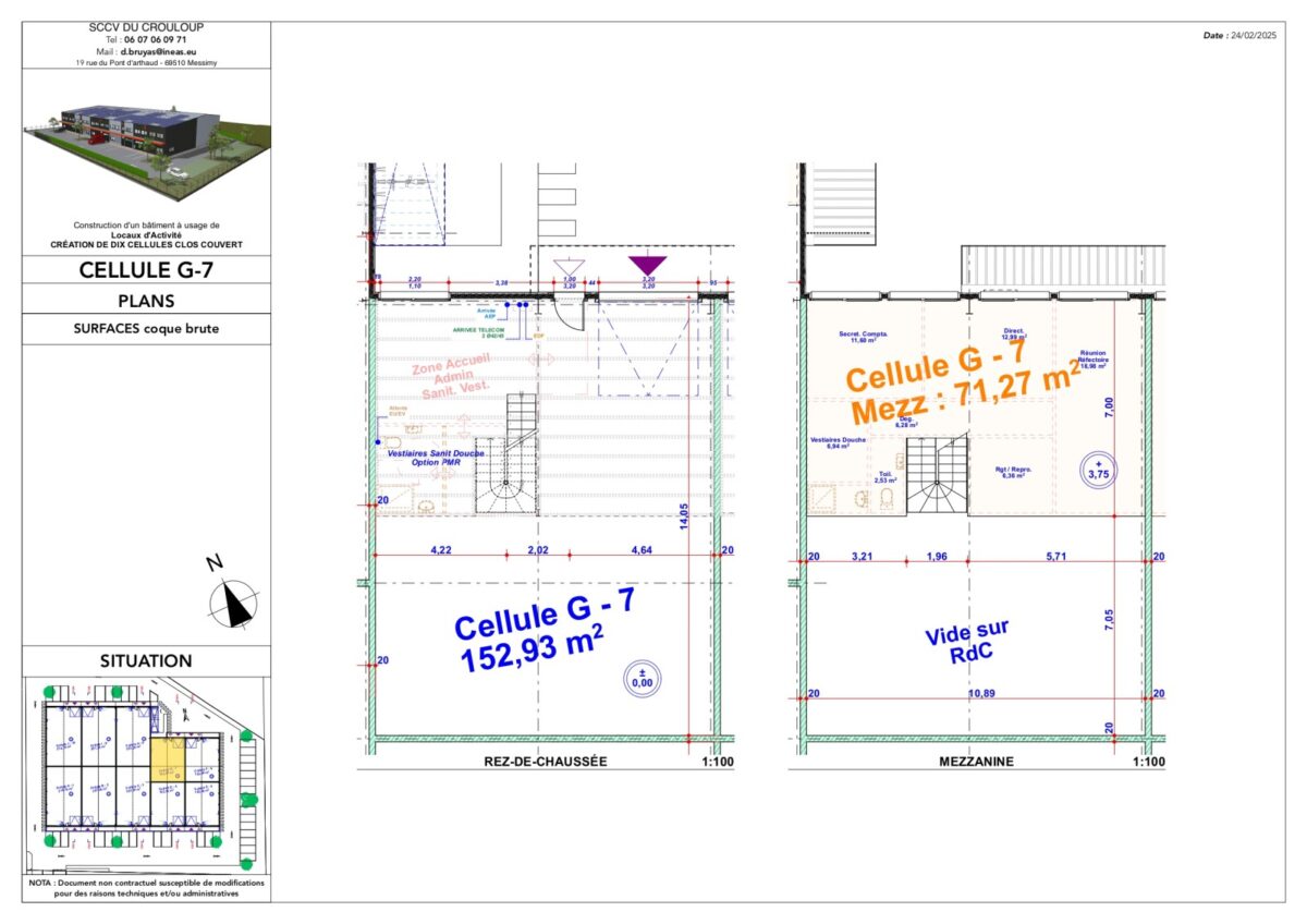 Total Cellule G7 Activités 217 4ème trimestre 2025 1 603,77 HT HD/m² 9 HT/m²/an 4% HT du prix de vente HT, à la charge de l’acquéreur TVA et frais de notaire réduits G7