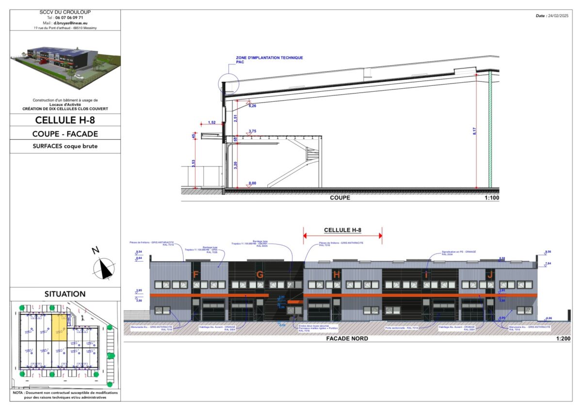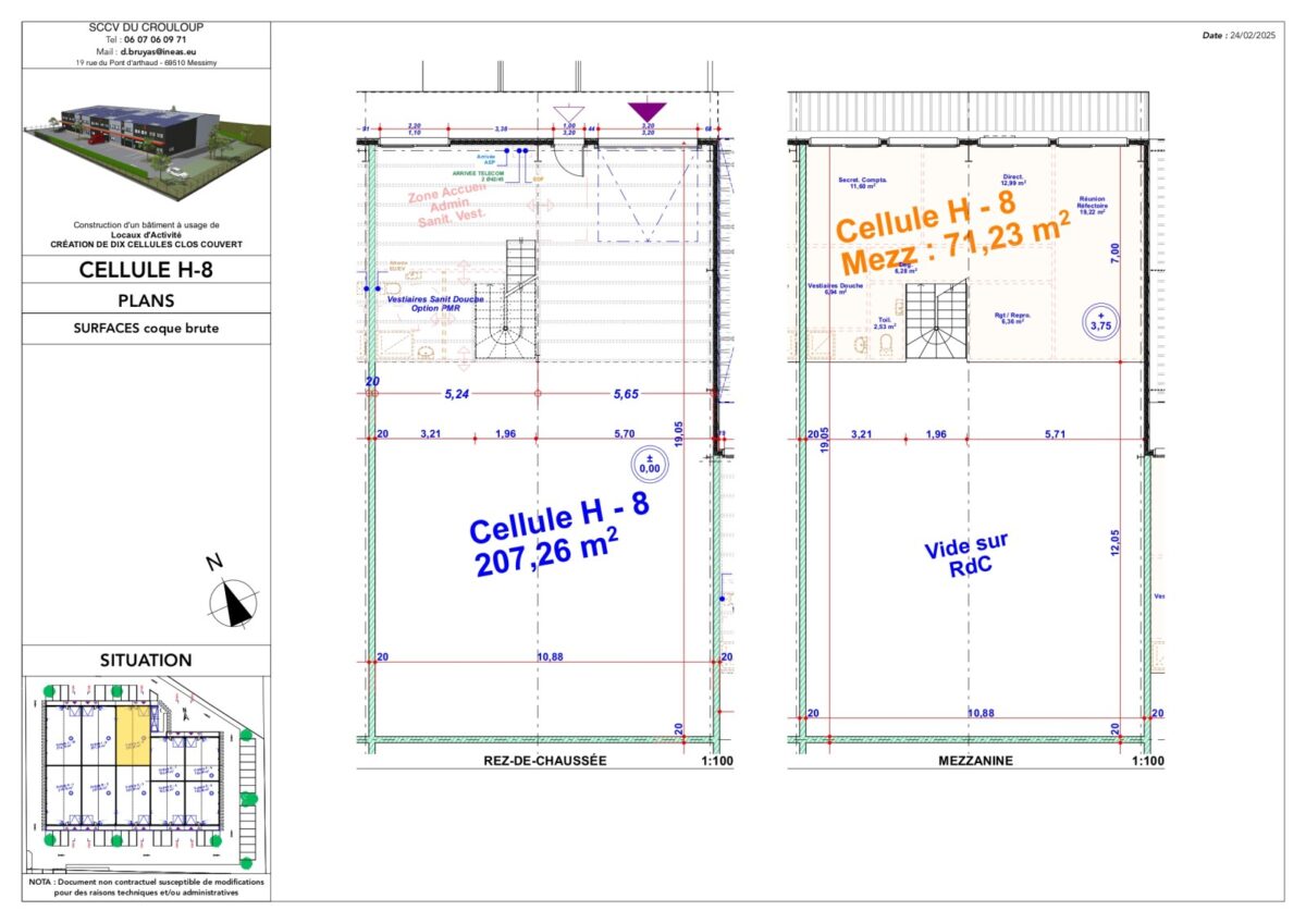 Total Cellule H8 Activités 277 4ème trimestre 2025 1 598,22 HT HD/m² 9 HT/m²/an 4% HT du prix de vente HT, à la charge de l’acquéreur TVA et frais de notaire réduits H8