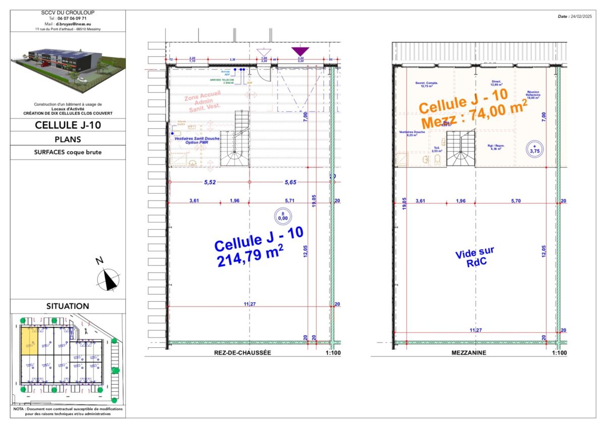 Total Cellule J10 Activités 277 4ème trimestre 2025 1 598,22 HT HD/m² 9 HT/m²/an 4% HT du prix de vente HT, à la charge de l’acquéreur TVA et frais de notaire réduits J10