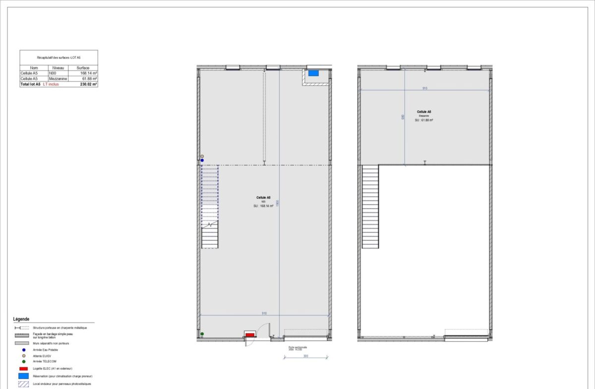 Nous vous proposons à l’acquisition des locaux d’activités neufs de 950 m², divisibles en 4 cellules à partir de 230 m².