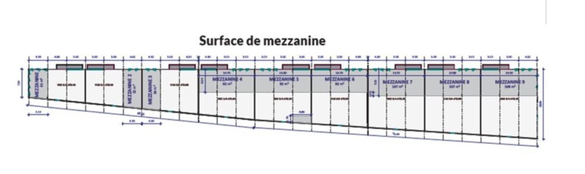 | Mezzanine | Mezzanine | 54 | 15% HT du loyer annuel HT HC, à la charge du preneur | T.V.A. | ILAT Indice des Loyers des Activités Tertiaires | A la charge de l’acquéreur | TVA et frais de notaire réduits | Trimestriel d’avance | ||||||||||