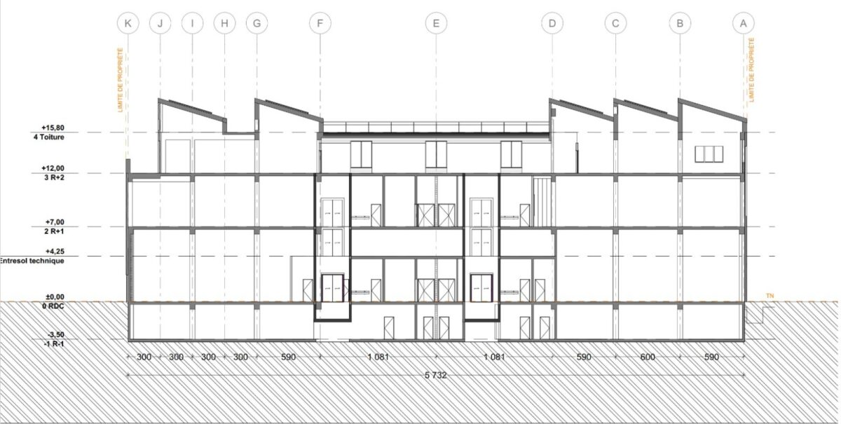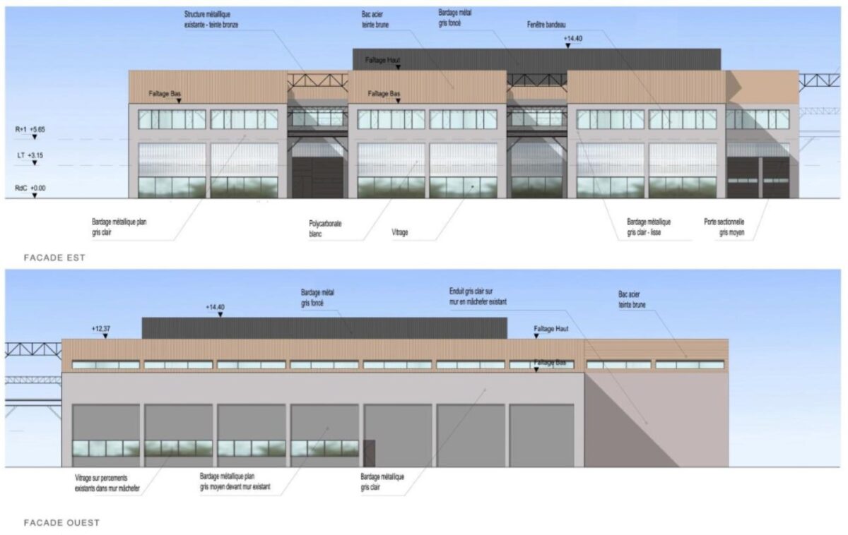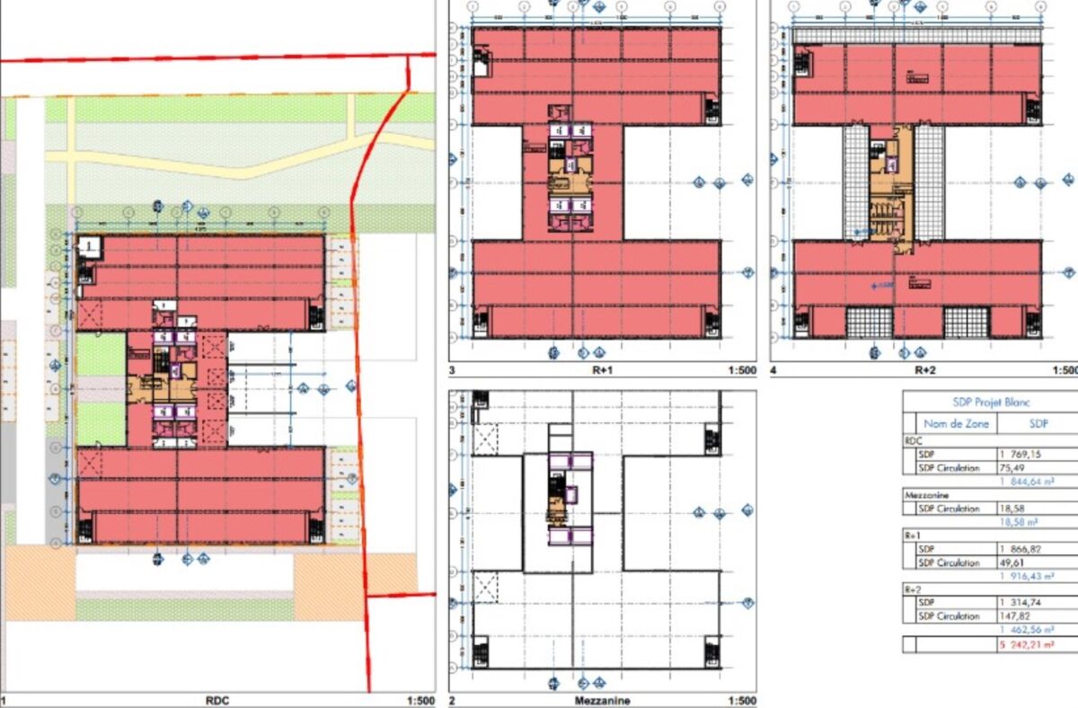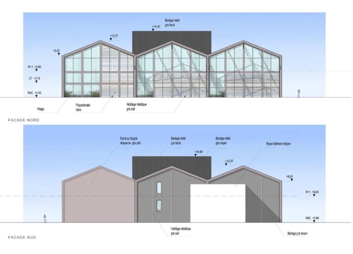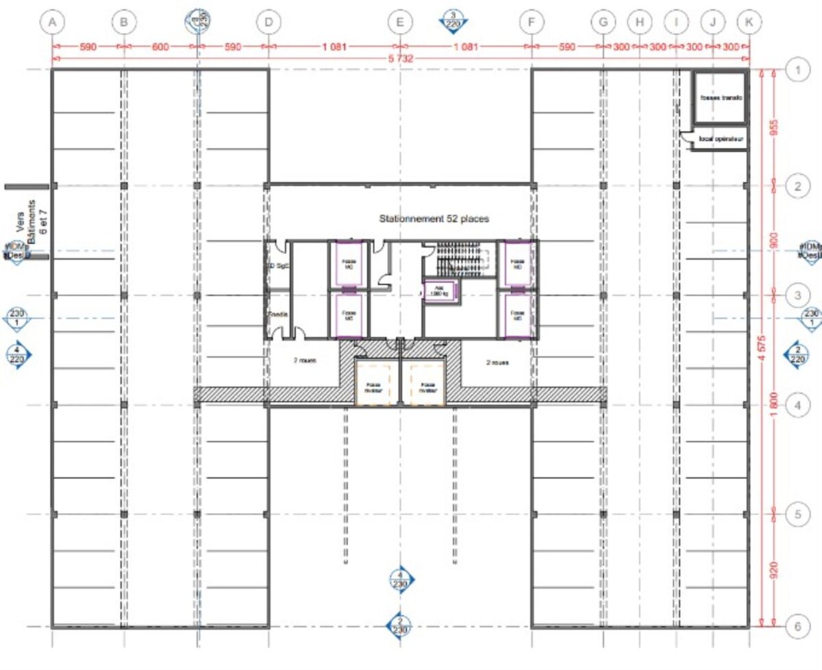 Bâtiment B : hauteur 6m en RDC et 4m en R+2